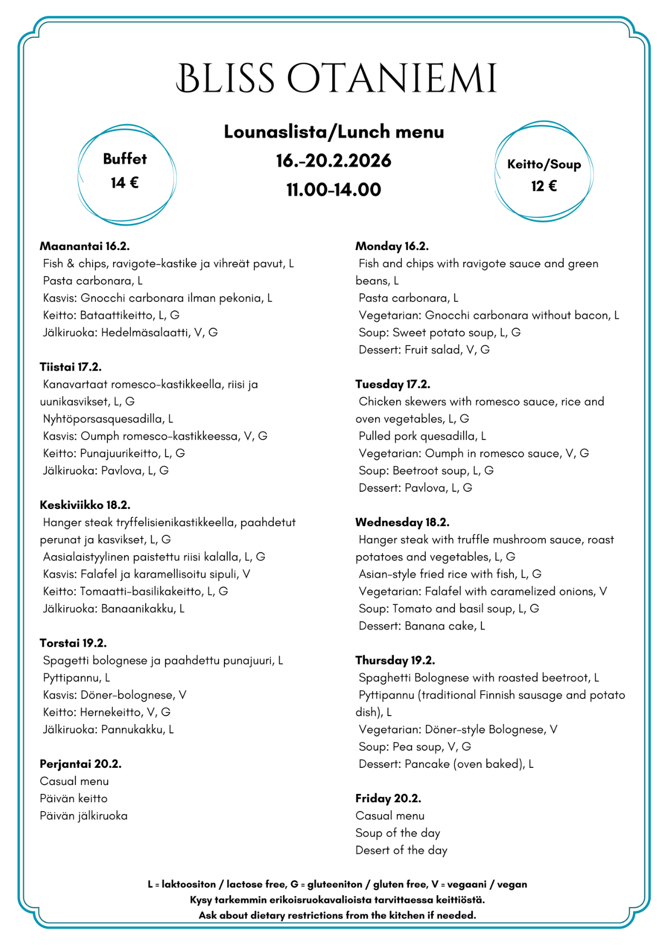 Lunch 16.-20.2.
